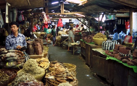 It was quite stressful, trying to wend our way through the hoards of locals and the ground was covered in puddles from the downpours, discarded and pulverized produce & waste, Hindu offerings, & the usual debris and garbage found everywhere in Indonesia.