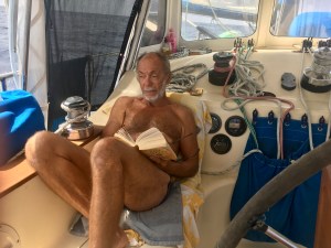 Frank takes over the responsibilities for the engine, the batteries, the solar panels and our power usage, adjusting as necessary or even running the engine for a while to keep the batteries happy when the solar panels are in the shade due to cloud cover or the sails shading them.
