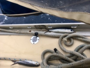 We had a boisterous day sailing. Every few minutes, the waves would push us over so far on the side that the foresail boom that was swung out to catch the wind, dipped into the water and as we leant over almost flat to the sea, water would come crashing underneath the clears into the cockpit