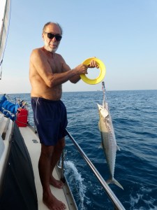 Thankfully, neither of us have experienced sea sickness for many years. In particularly rough weather we can feel a bit seedy but it’s a far cry from when we first started sailing in the late 1970’s and would both be constantly heaving over the side of Stars End 1.