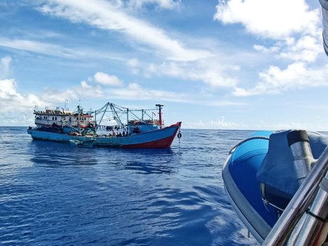 The Indonesian fishing boat lowering it’s tender