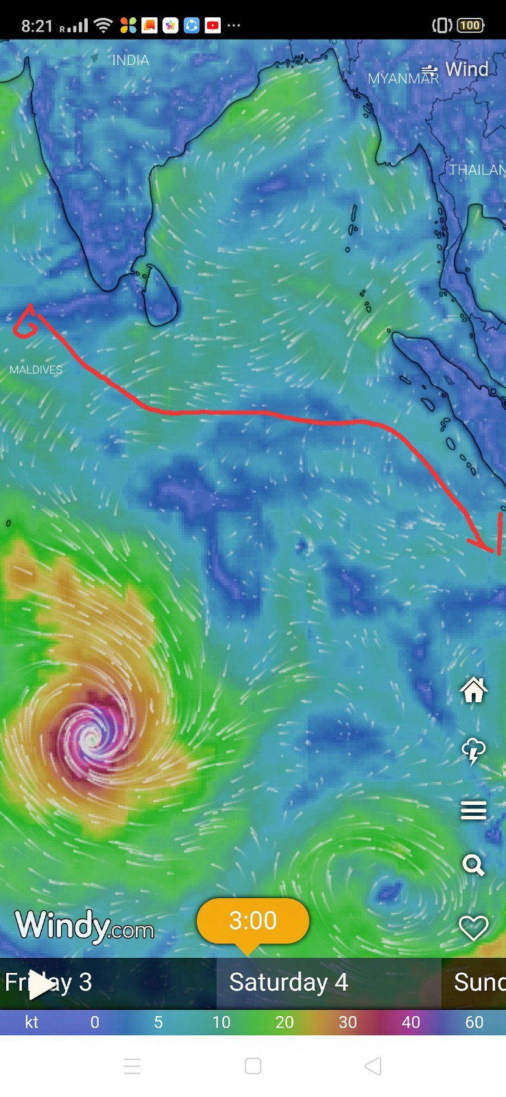 Hoping to get some wind to help us sail from the Maldives with this low pressure system close to Mauritius