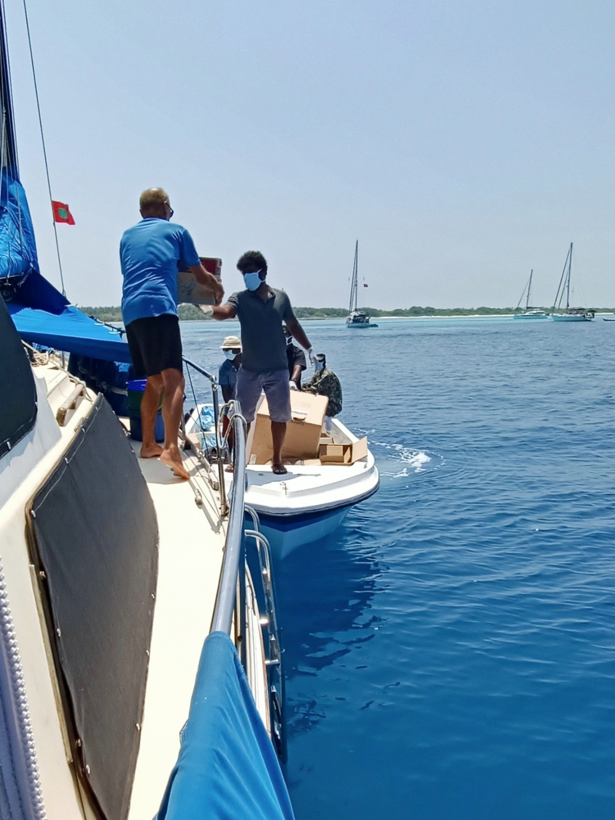 We were ignored all that first day which confused us and was nerve racking. That night, when we were already in bed tired after our passage, Asad came out with the coastguard who asked if he could refuel us so we could leave immediately, but Frank refused. Next day, Asad contacted us to say that the coastguard wished to know our requirements for delivery at 7am next morning before we must leave the Maldives.