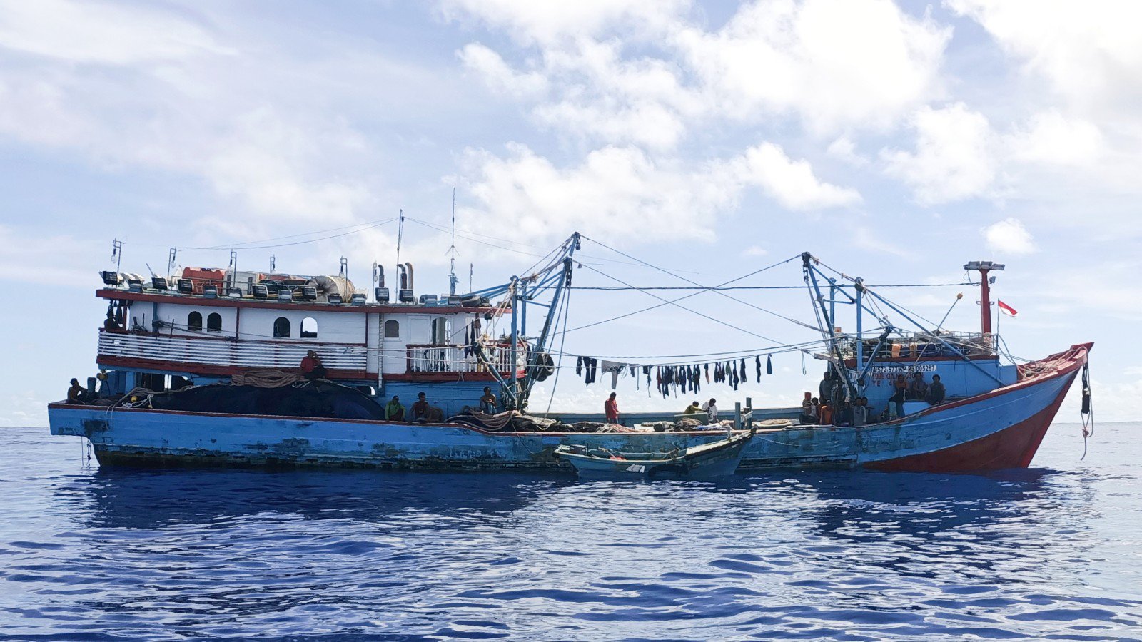 The Indonesian fishing boat lowering it’s tender