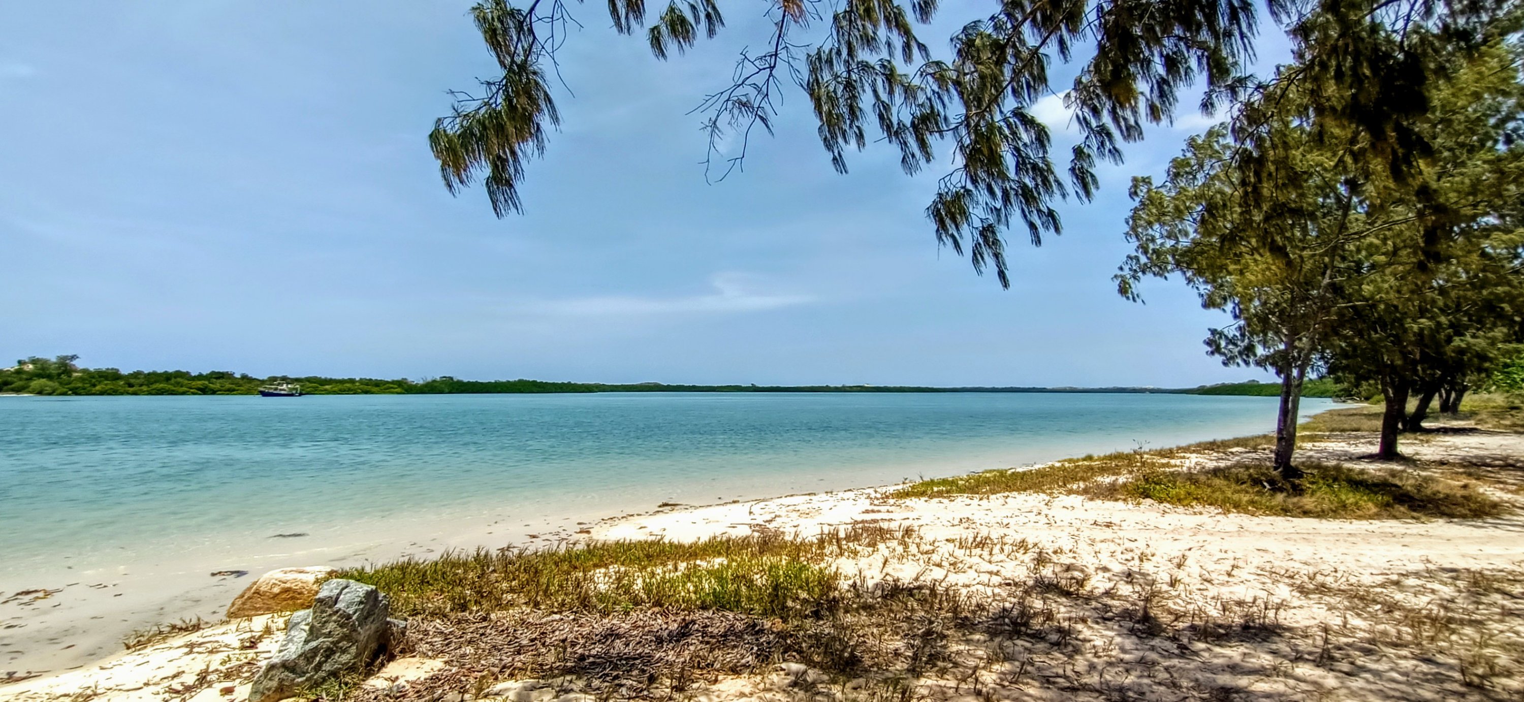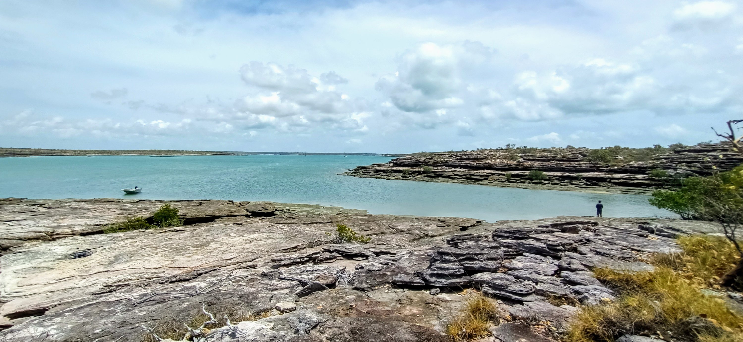 Craggy shorelines were riddled with crumbling layers of sandstone bordering arid scrub and stumpy gnarled trees stretching back as far as the eye could see. It felt almost like another planet it was so quiet and deserted.