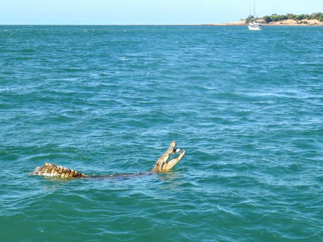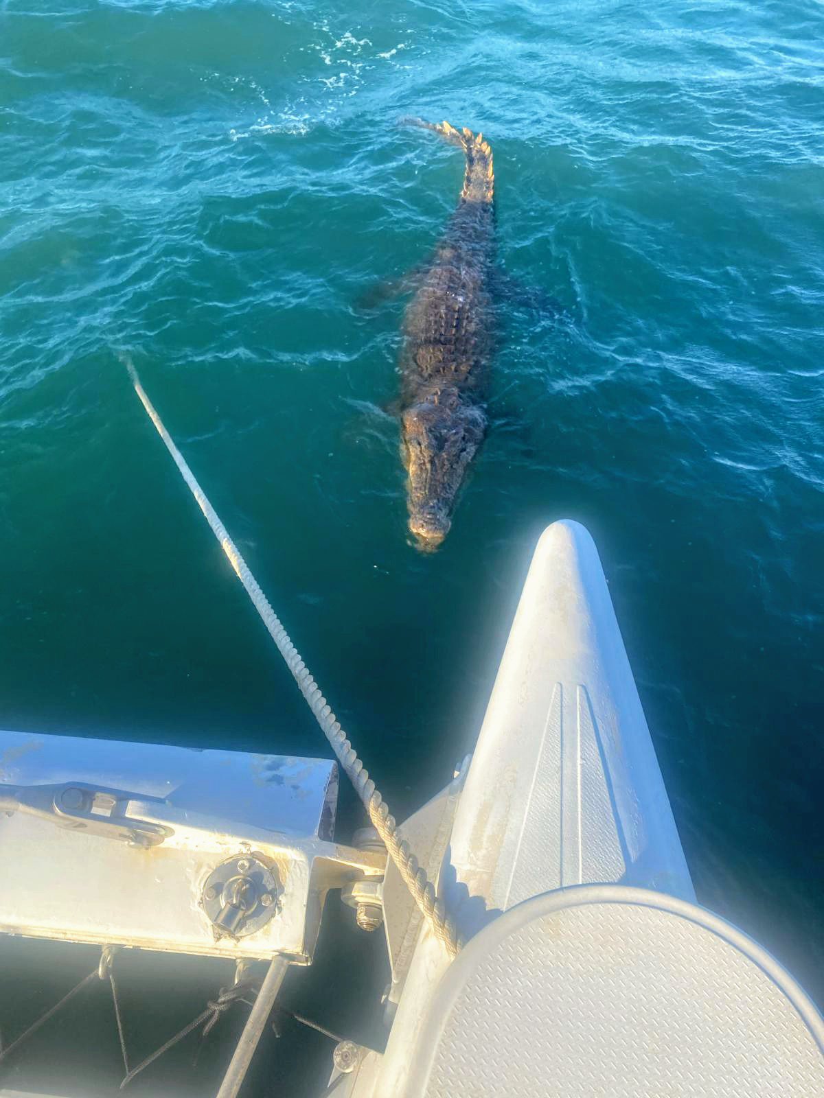This 4m croc was keen to stay near ‘Moana’ after he got fed on fish carcass