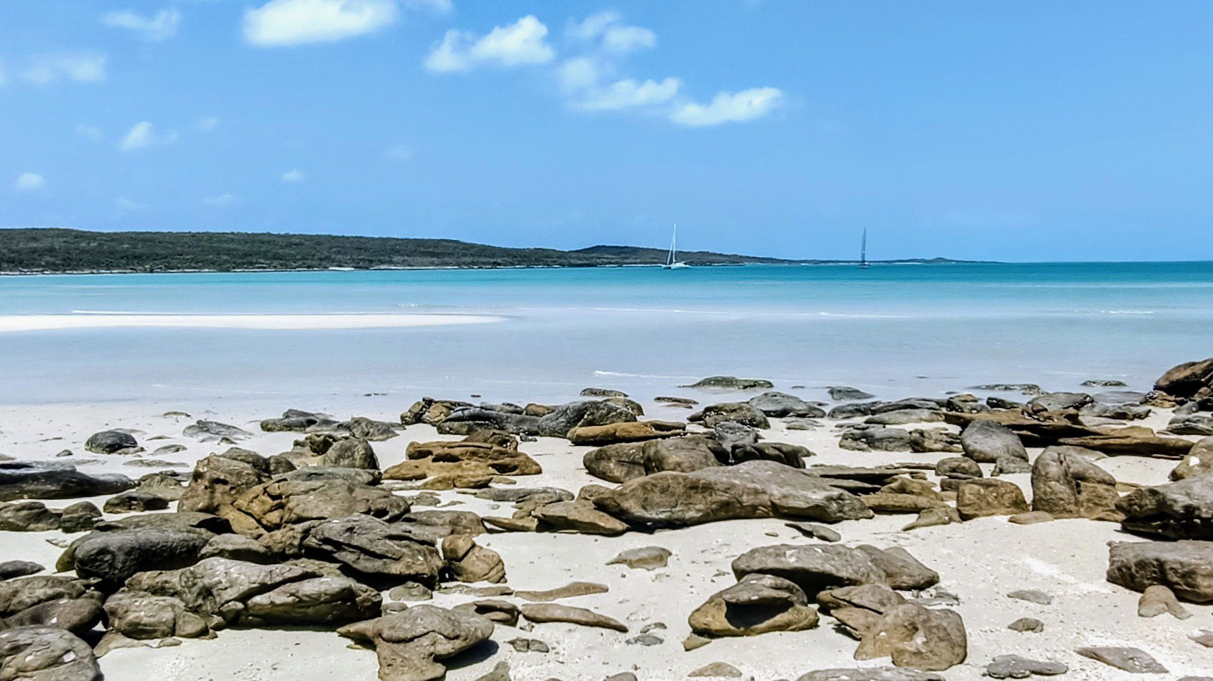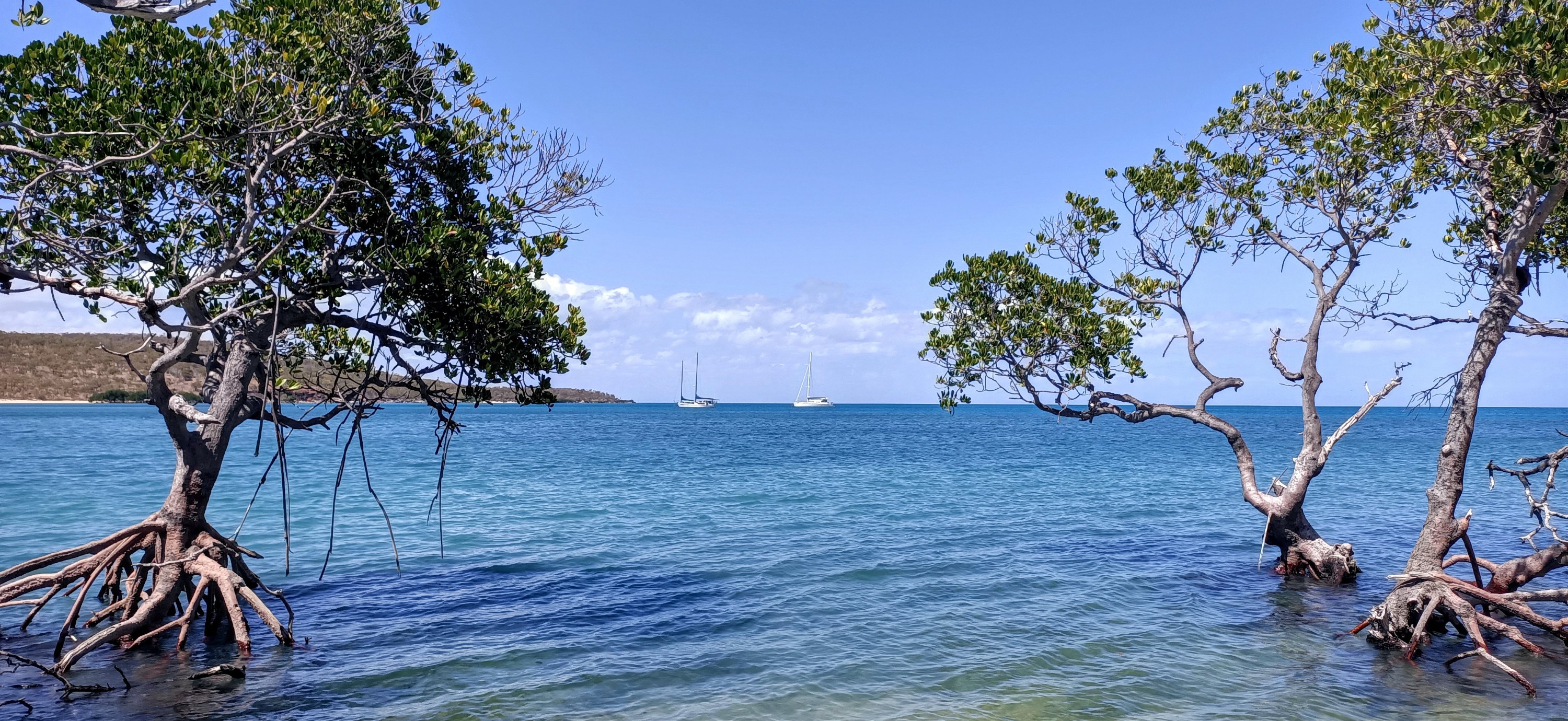 After leaving Darwin, we’d had to wean ourselves from the constant need to have internet access on our mobile phones. After a few weeks, the lack of easy communication became a relief as we found ourselves reverting to use it for the purpose of clock, E book and camera. As we came closer to where ‘civilization’ began again, our internet reception returned albeit intermittently, teasing us by downloading messages but not the attached photos and videos, or allowing us to reply.  After motor sailing over 1600 miles since Darwin, we now have another 1000+ miles left to reach Brisbane. We’re hoping for some north easterly winds to come in soon, the first following wind we’ll  experience since before leaving India. We’re not putting pressure on ourselves by setting time schedules but are looking forward to relaxing more once we are clear of cyclone areas.