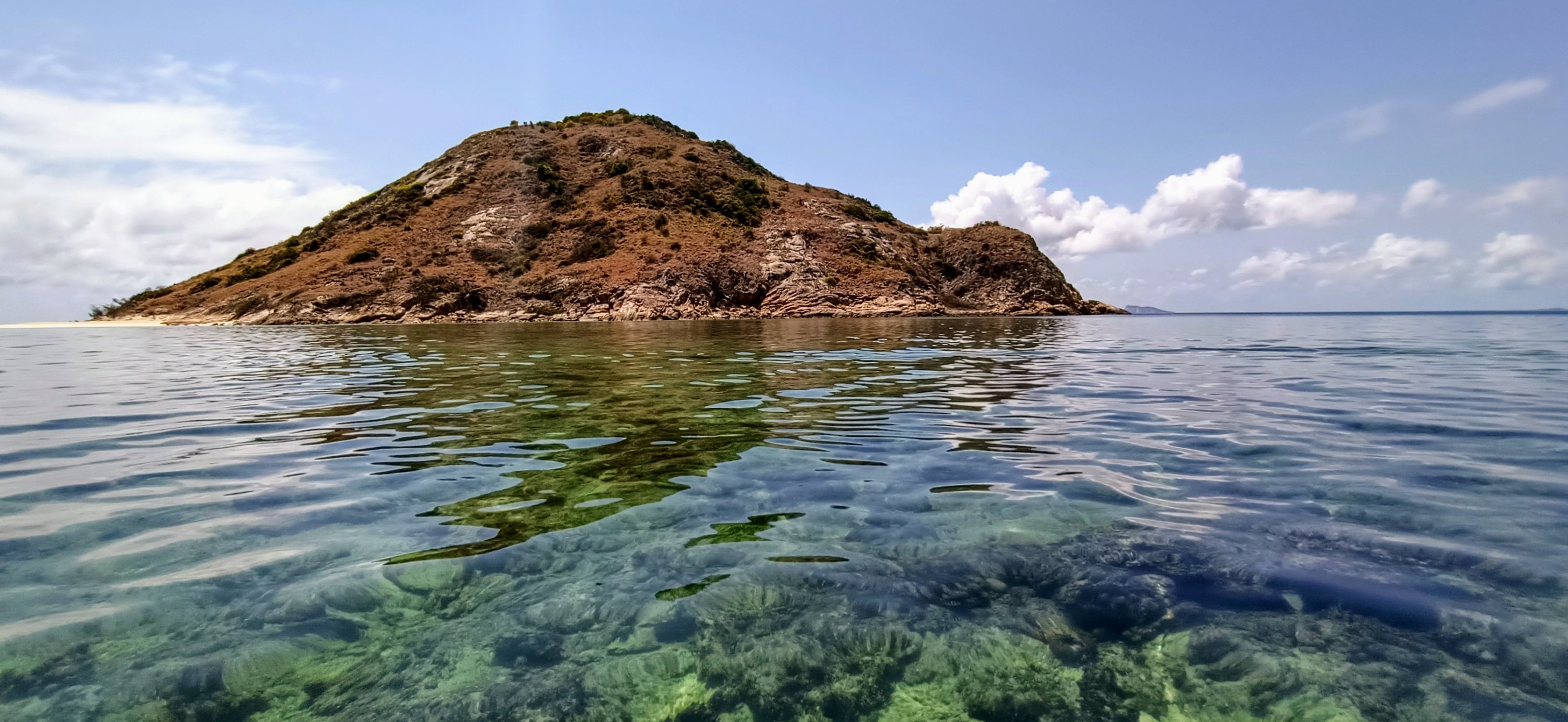 The winds finally abated after almost a week so on our last day, Frank used his scuba gear to give the keel a good clean from barnacles and weed growth. He only saw one friendly shark with its remora in tow. With calmer weather we also enjoyed some more snorkeling around the north point of the island.