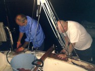 img_3448 Published January 13, 2017 at 3264 × 2448 Gutting fish on ‘Lotus’ with Bill at Cavalli Isles