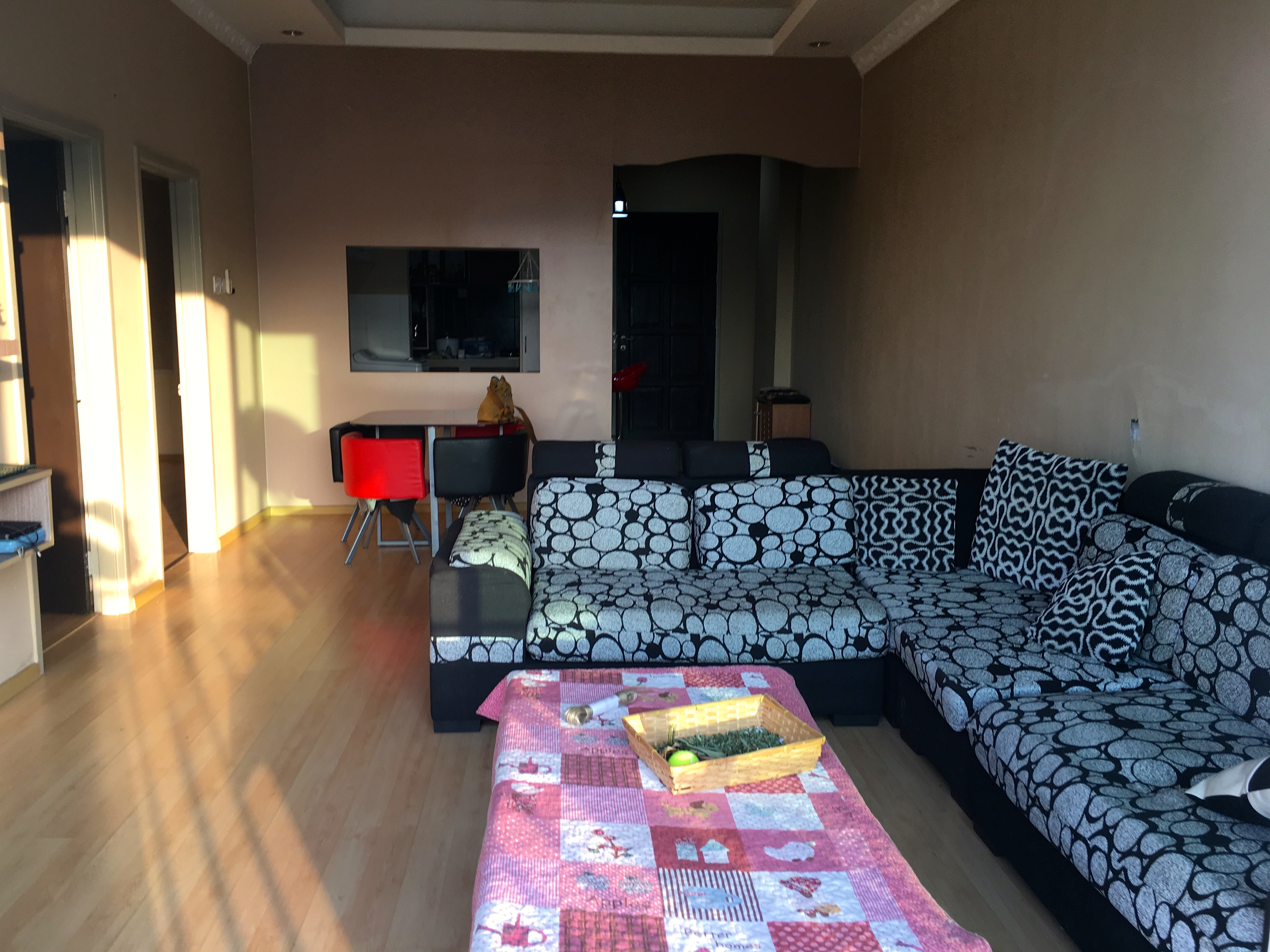 Lounge room with kitchen at rear
